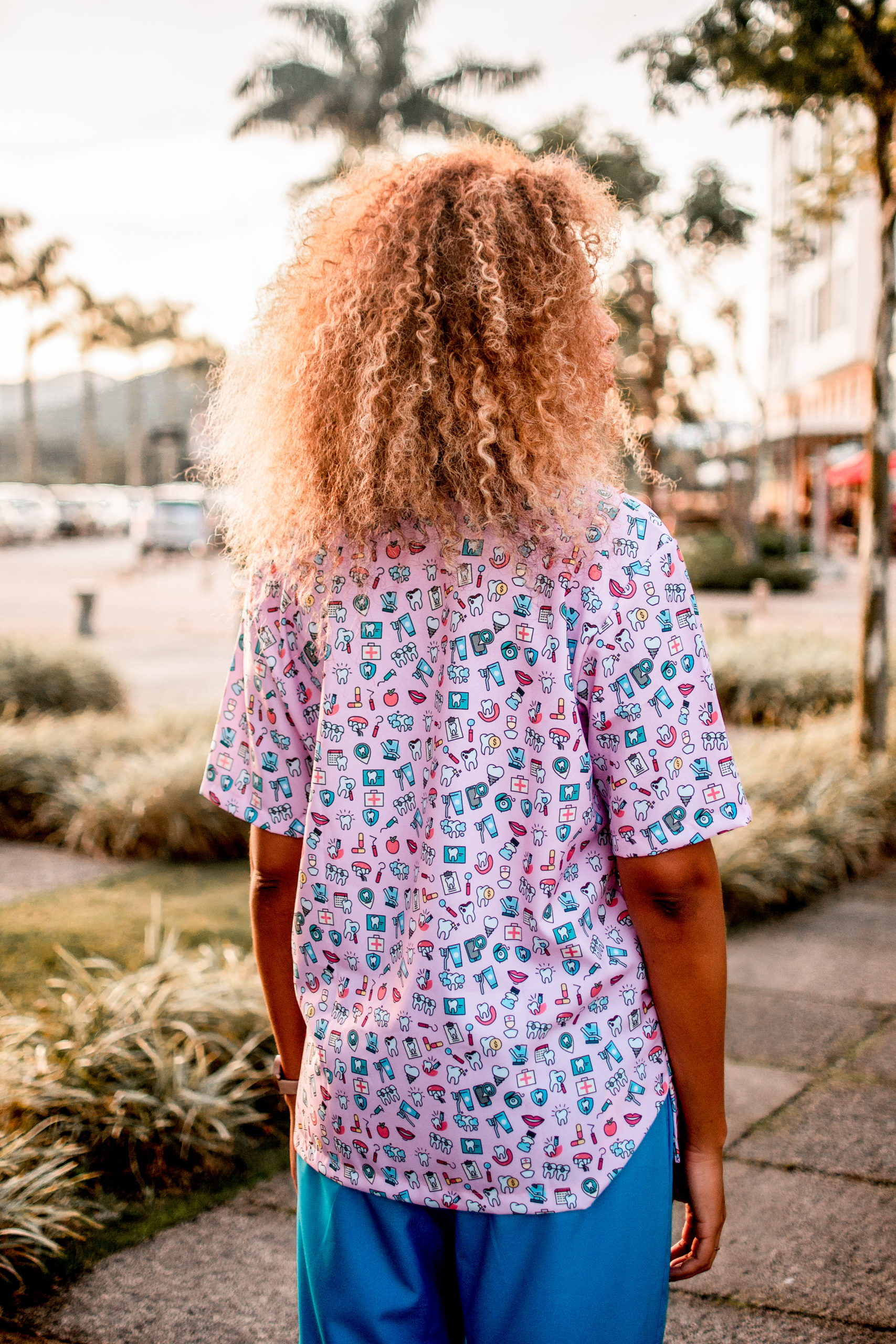 | Nome | Blusa Scrub de Pijama Cirúrgico Estampado Unissex – Dentinhos Fundo Rosa |