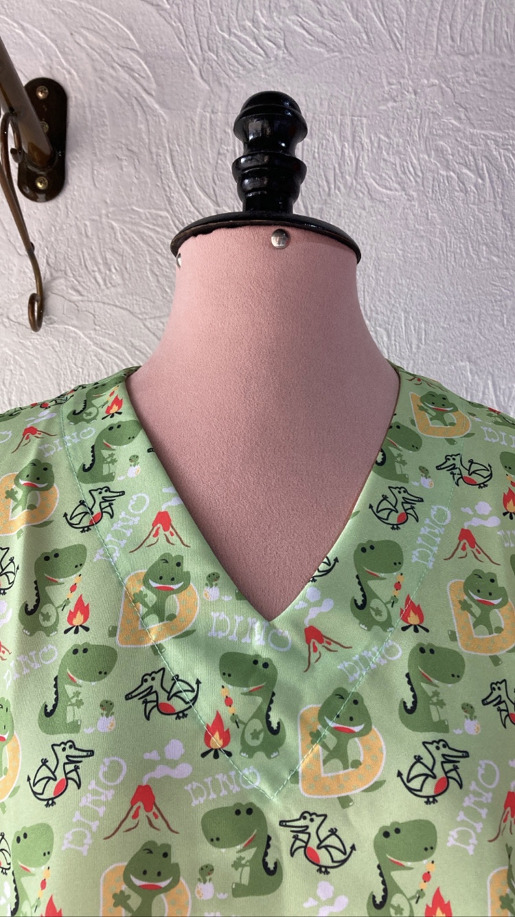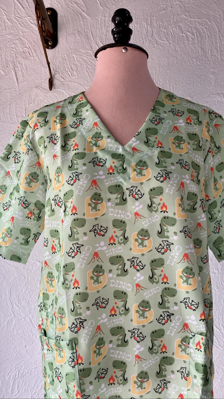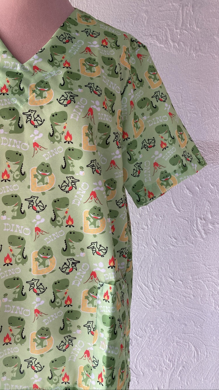 Blusa Scrub de Pijama Cirúrgico Estampado Unissex – Dino