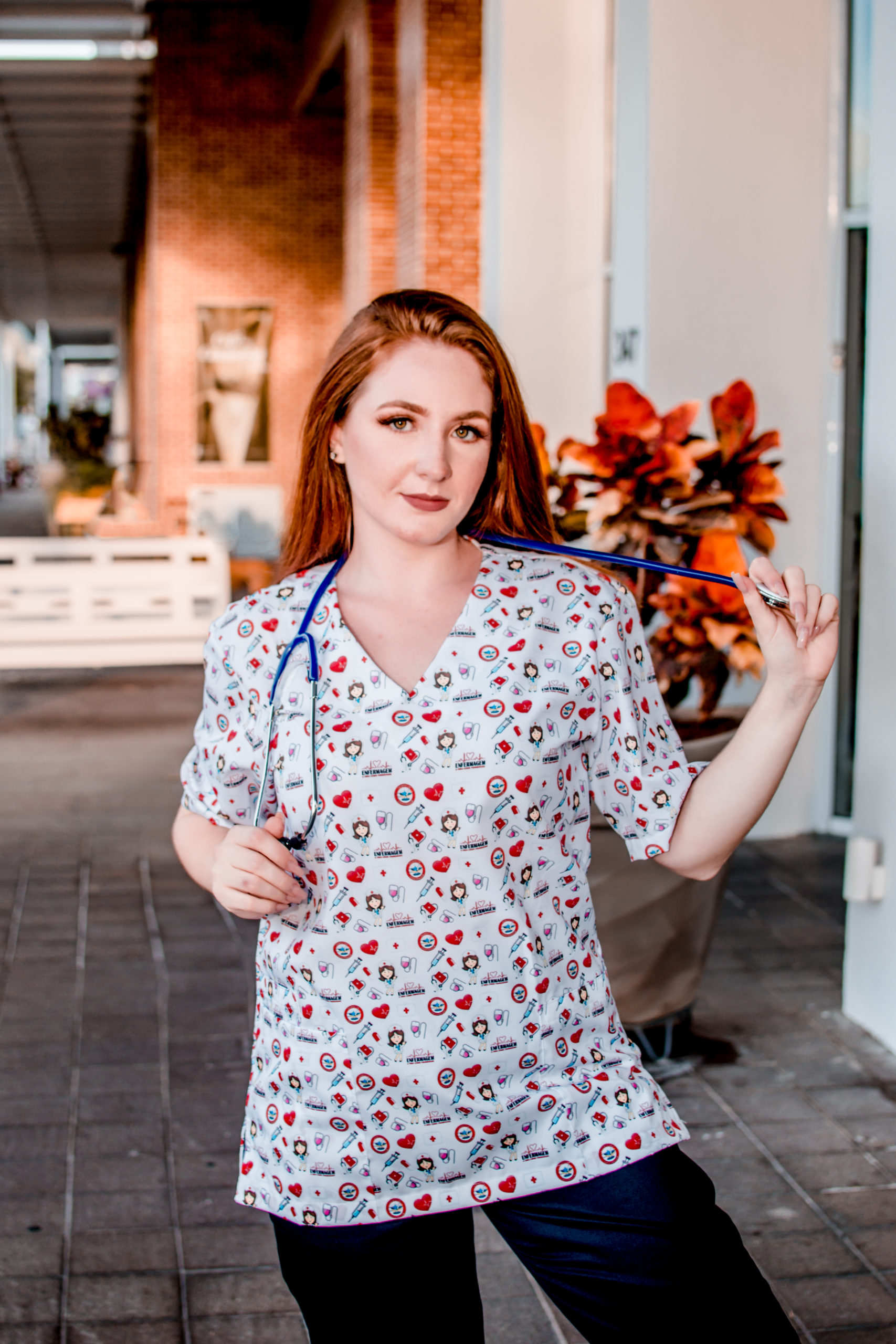 Blusa Scrub de Pijama Cirúrgico Estampado Unissex – Enfermagem Coração