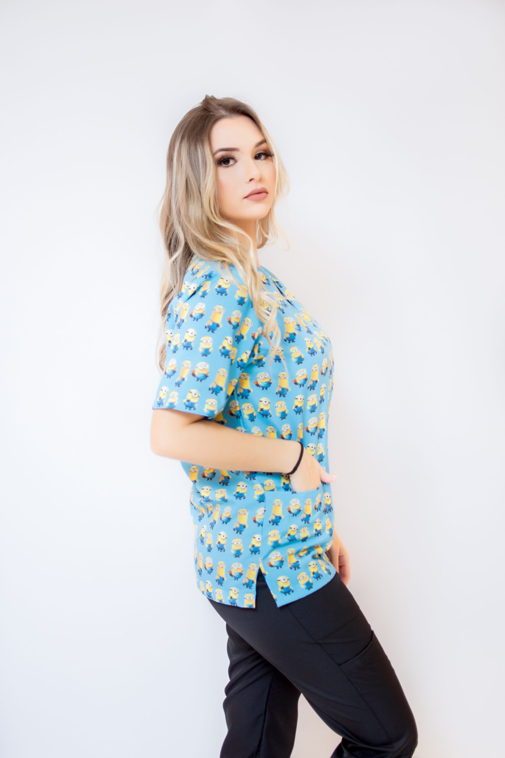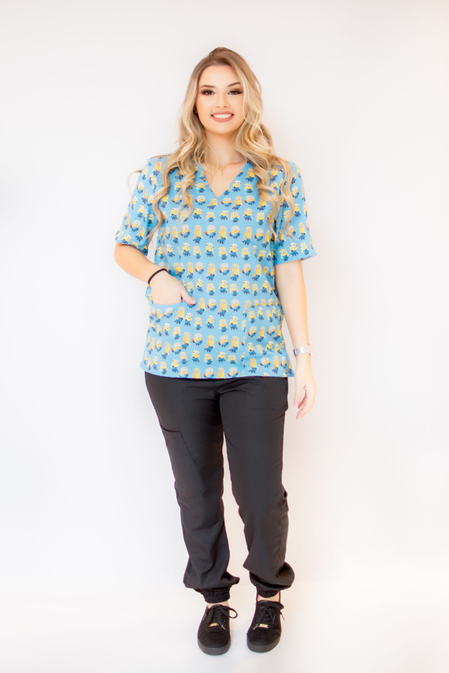 Blusa Scrub de Pijama Cirúrgico Estampado Unissex – Minions