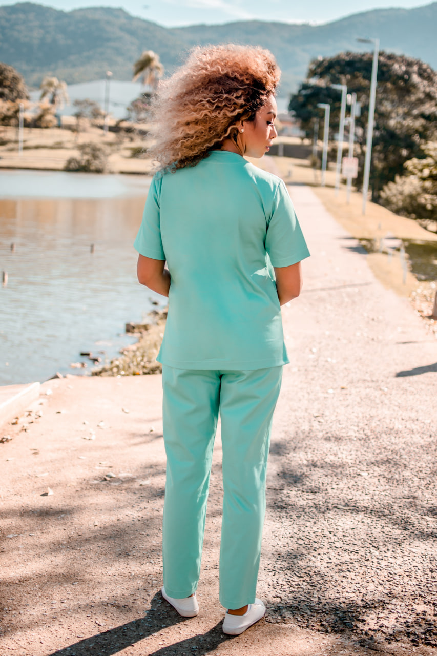 Pijama cirúrgico ideal para: Profissionais da saúde, Pacientes e visitantes que circulam em áreas hospitalares.