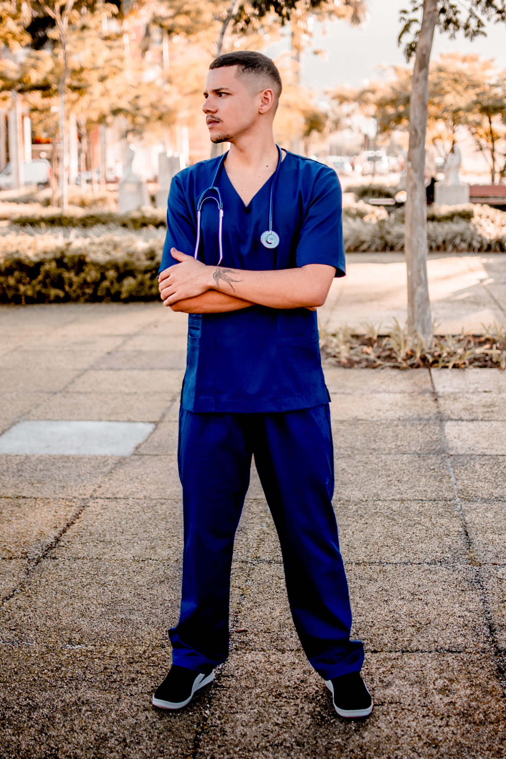 Pijama cirúrgico ideal para: Profissionais da saúde, Pacientes e visitantes que circulam em áreas hospitalares.