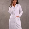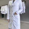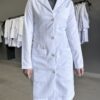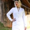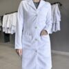| Nome | Jaleco Feminino Branco Acinturado Gabardine Microfibra Pesada Botão Dourado |