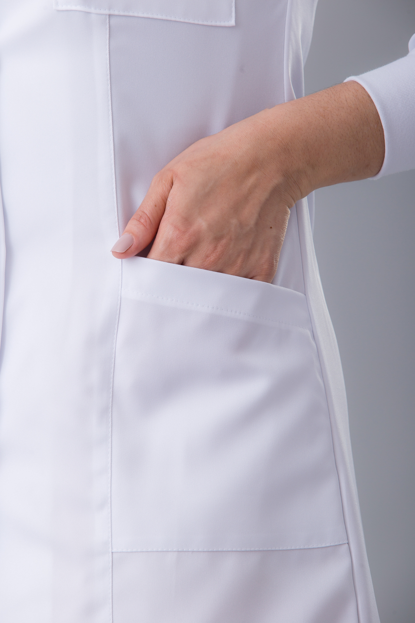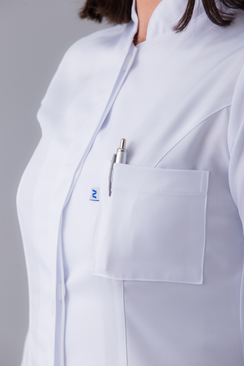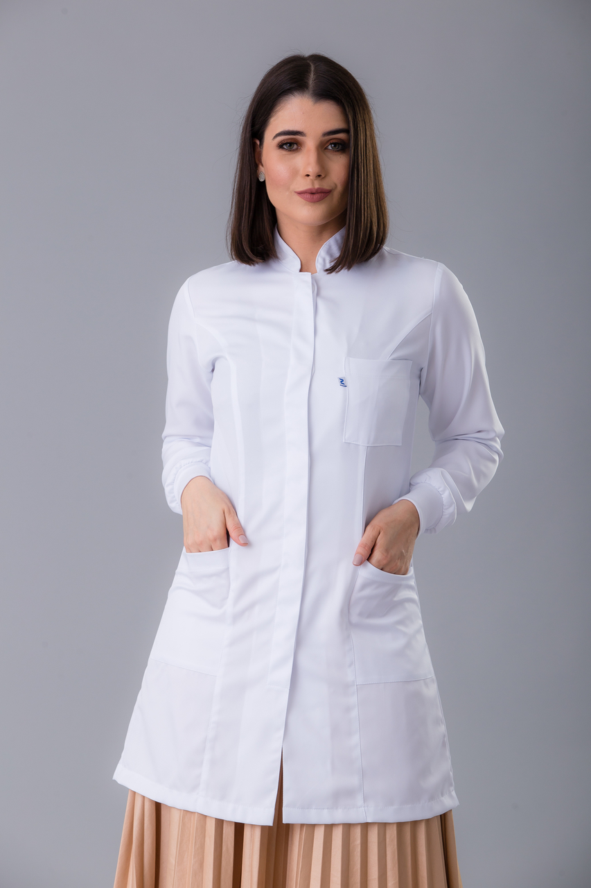 | Nome | Jaleco Feminino Branco Manga Longa Com Gola Padre e Punho Gabardine |
