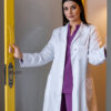Jaleco Feminino Branco Manga Longa Com Martigale Gabardine Alto Padrão