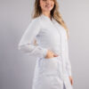 Tecido de toque suave e textura agradável que garantem máximo conforto durante toda a jornada de trabalho. Além disso, o tecido é resistente a amassados, encolhimento e desbotamento, mantendo o jaleco impecável mesmo após longas horas de uso. O fechamento em zíper e gola padre conferem um design sofisticado ao jaleco, perfeito para quem busca um look mais estiloso. Com dois bolsos na frente e abertura lateral, oferece espaço organizado para carregar seus itens essenciais com praticidade. A abertura lateral facilita o acesso ao bolso da calça e ao cinto, tornando a sua rotina mais conveniente. Além disso, possui elastano na sua composição, proporcionando mais mobilidade e valorizando a silhueta.