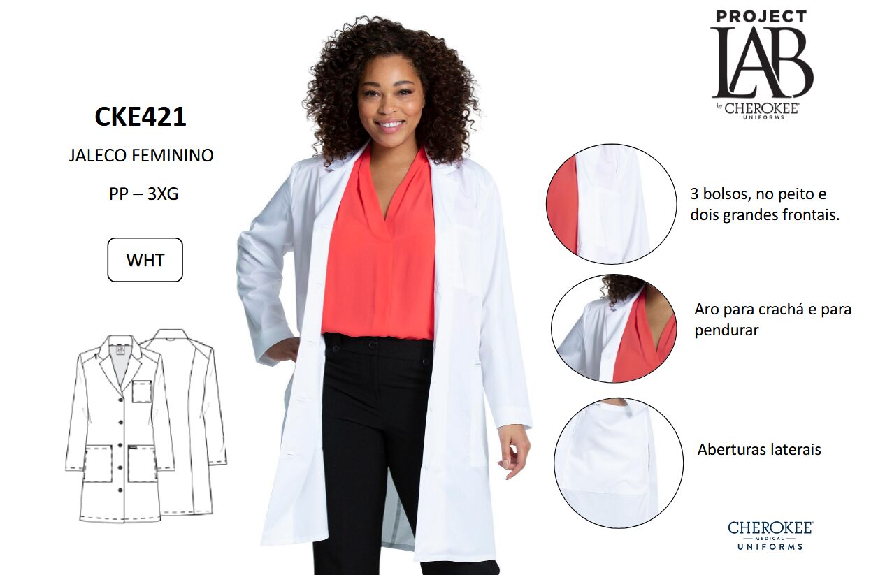 Jaleco Project Lab Cherokee, um produto de altíssima qualidade reconhecido mundialmente, é a escolha ideal para profissionais da saúde de sucesso que buscam um jaleco branco de alto padrão, com conforto e desempenho excepcional.