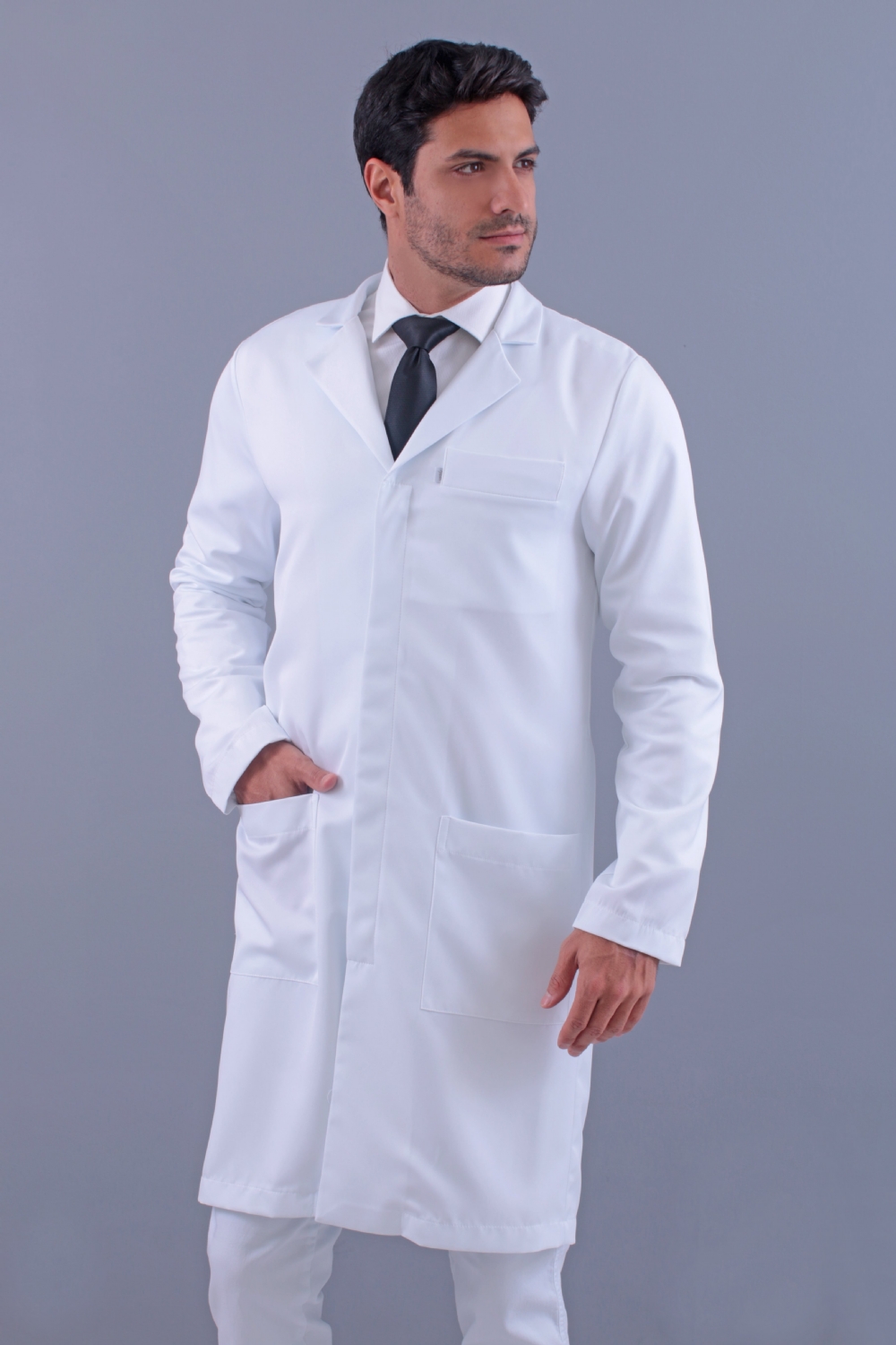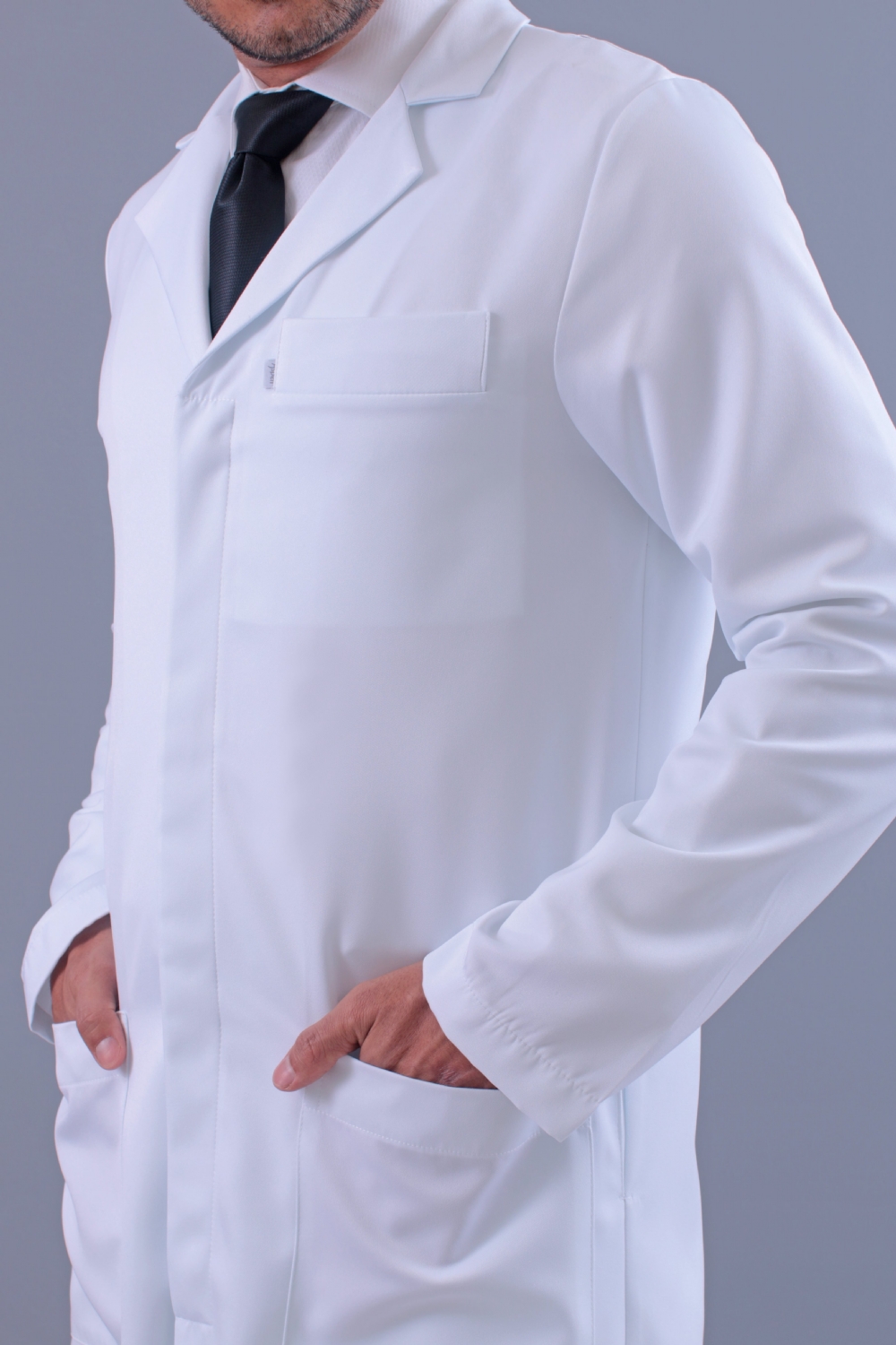 Jaleco Masculino Alfaiataria Bolso Embutido e Botão Oculto Gabardine Microfibra Pesada