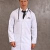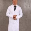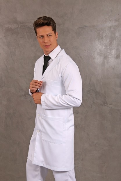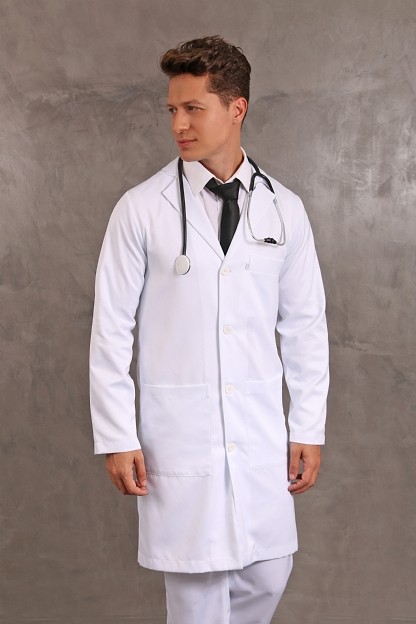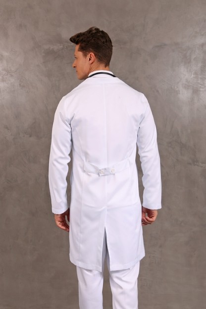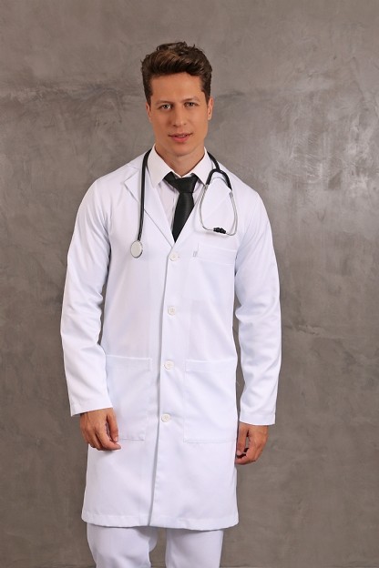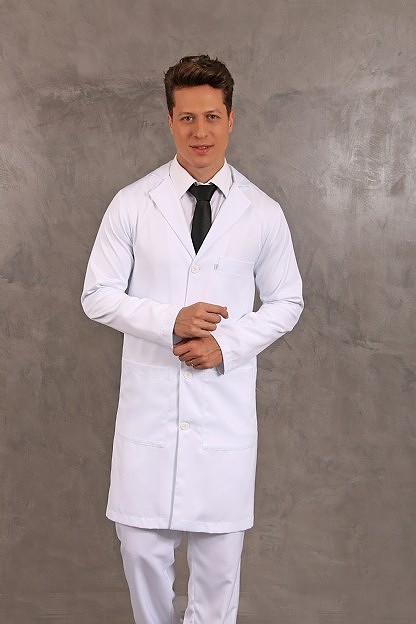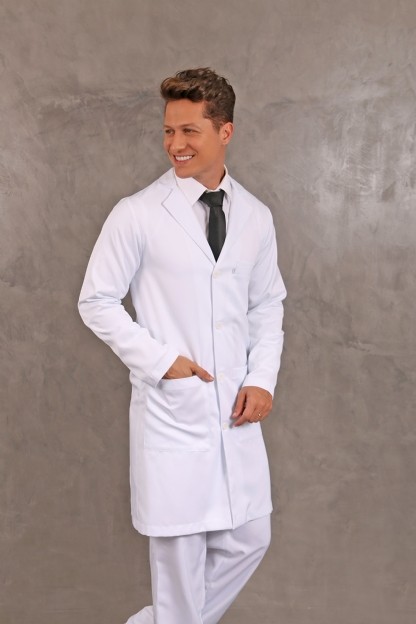 Jaleco Branco, Manga longa, Modelo slim, com 2 bolsos inferiores e 1 superior embutido, confeccionado em Gabardine microfibra, tecido fresco e leve agrega à peça um espetacular caimento no corpo, não amarela, é excepcional em acabamento, qualidade e durabilidade.