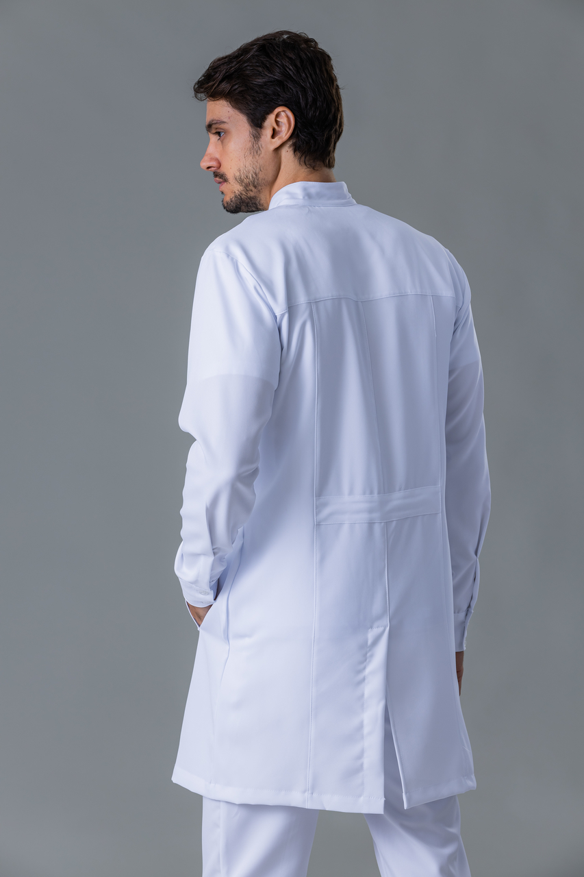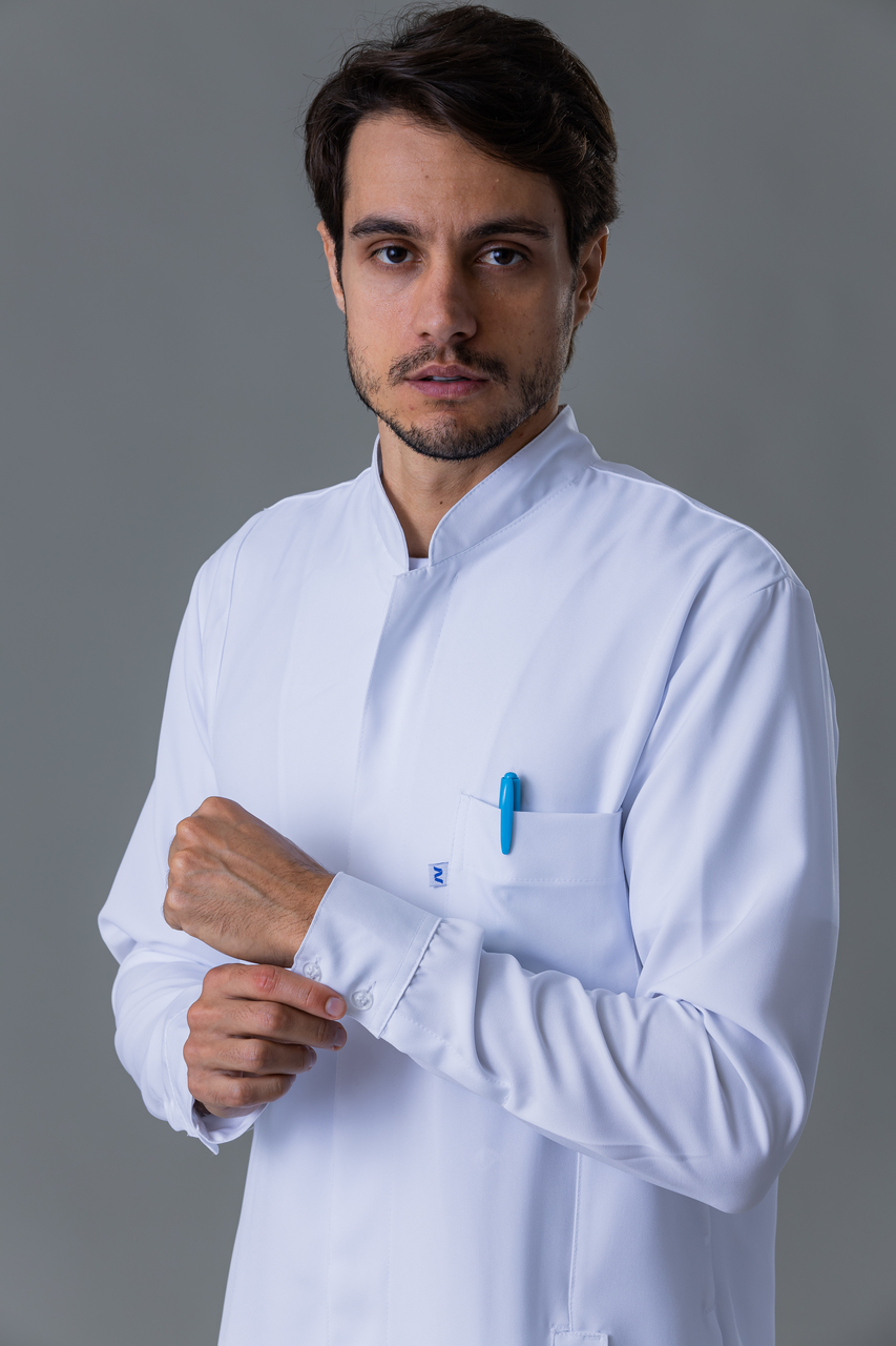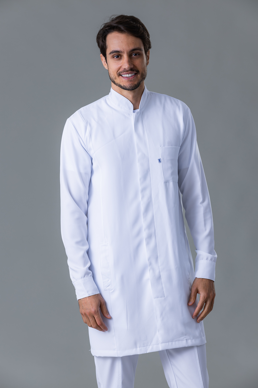 | Nome | Jaleco Masculino Branco Manga Longa Com Gola Padre Slim Fit Em Gabardine |
