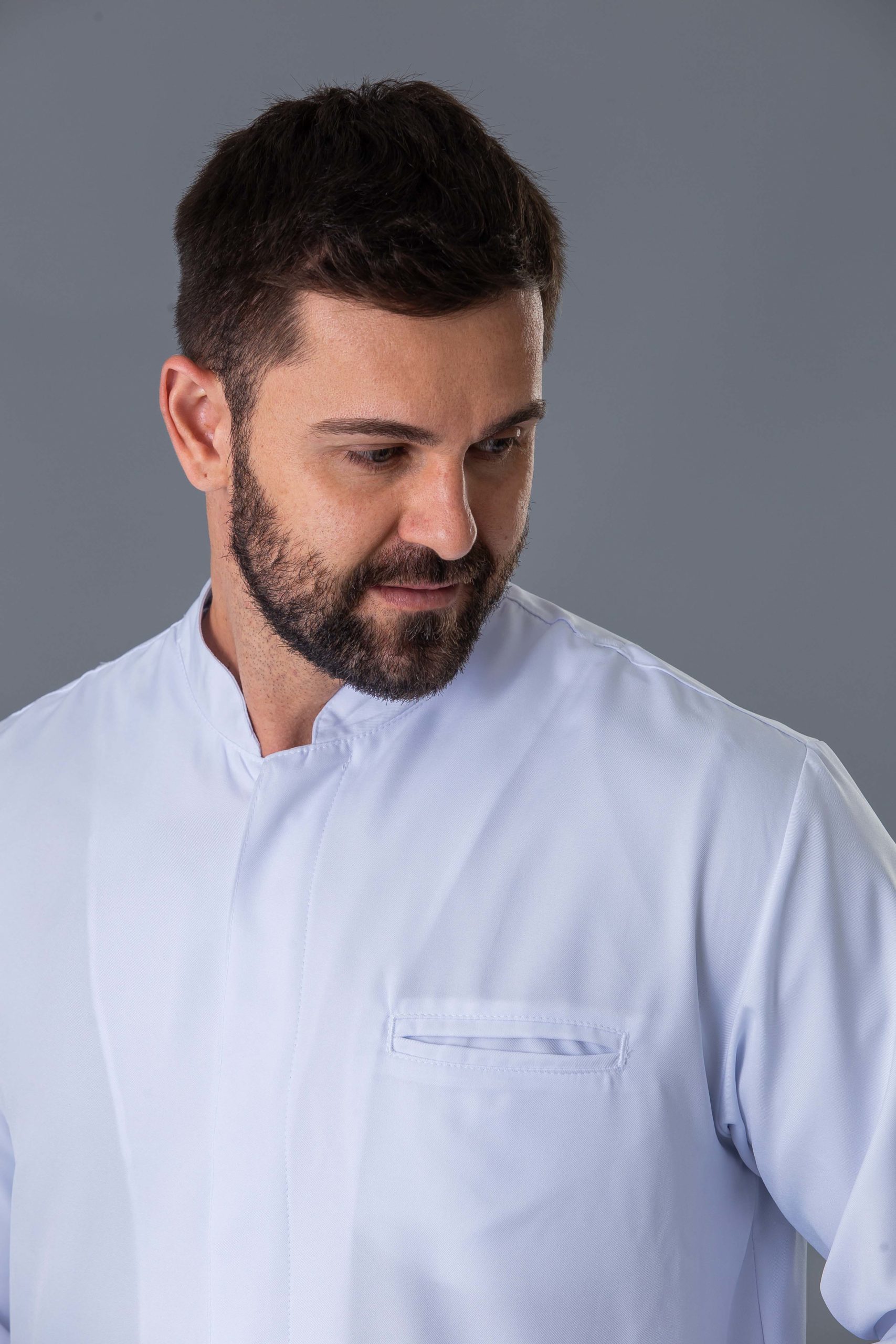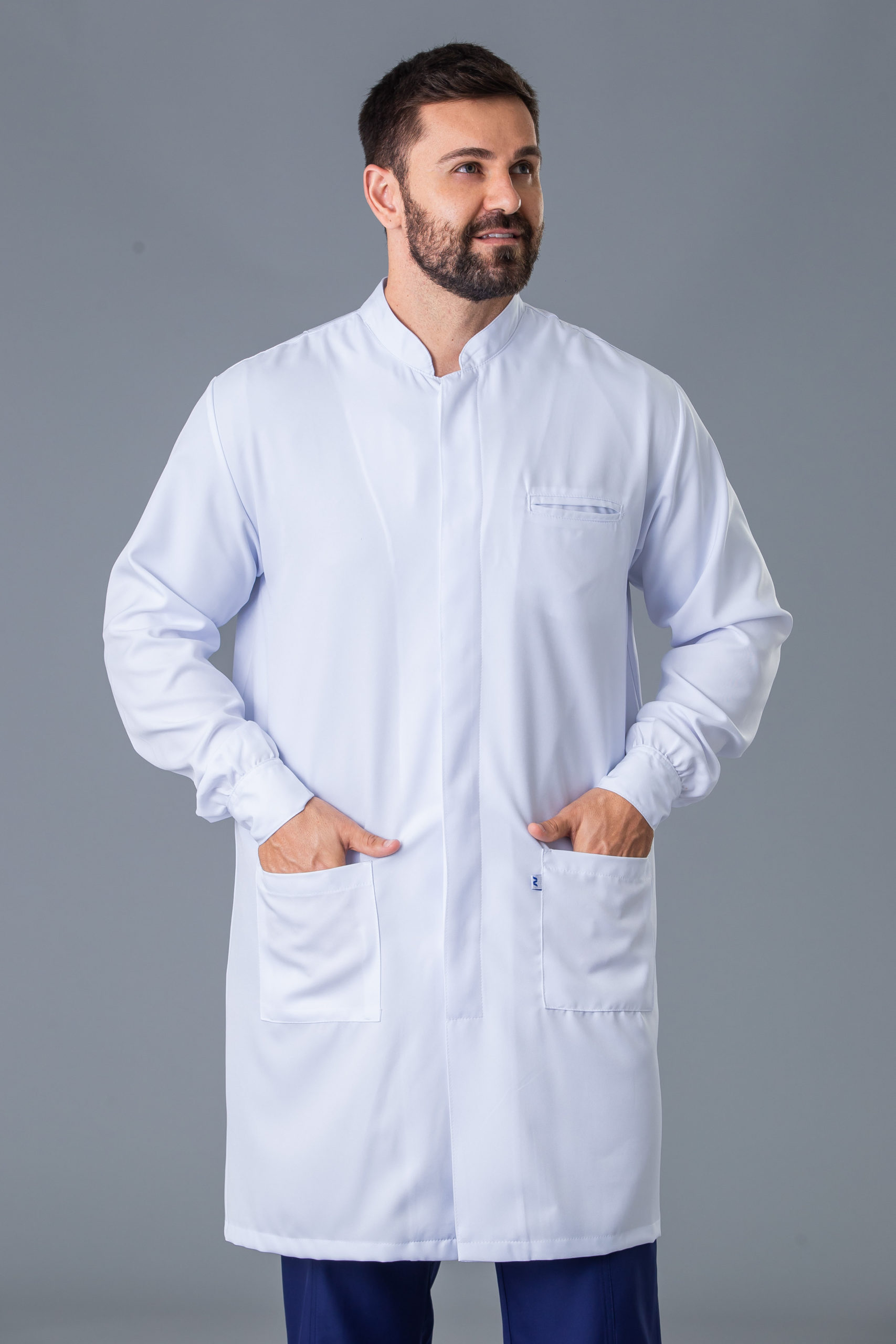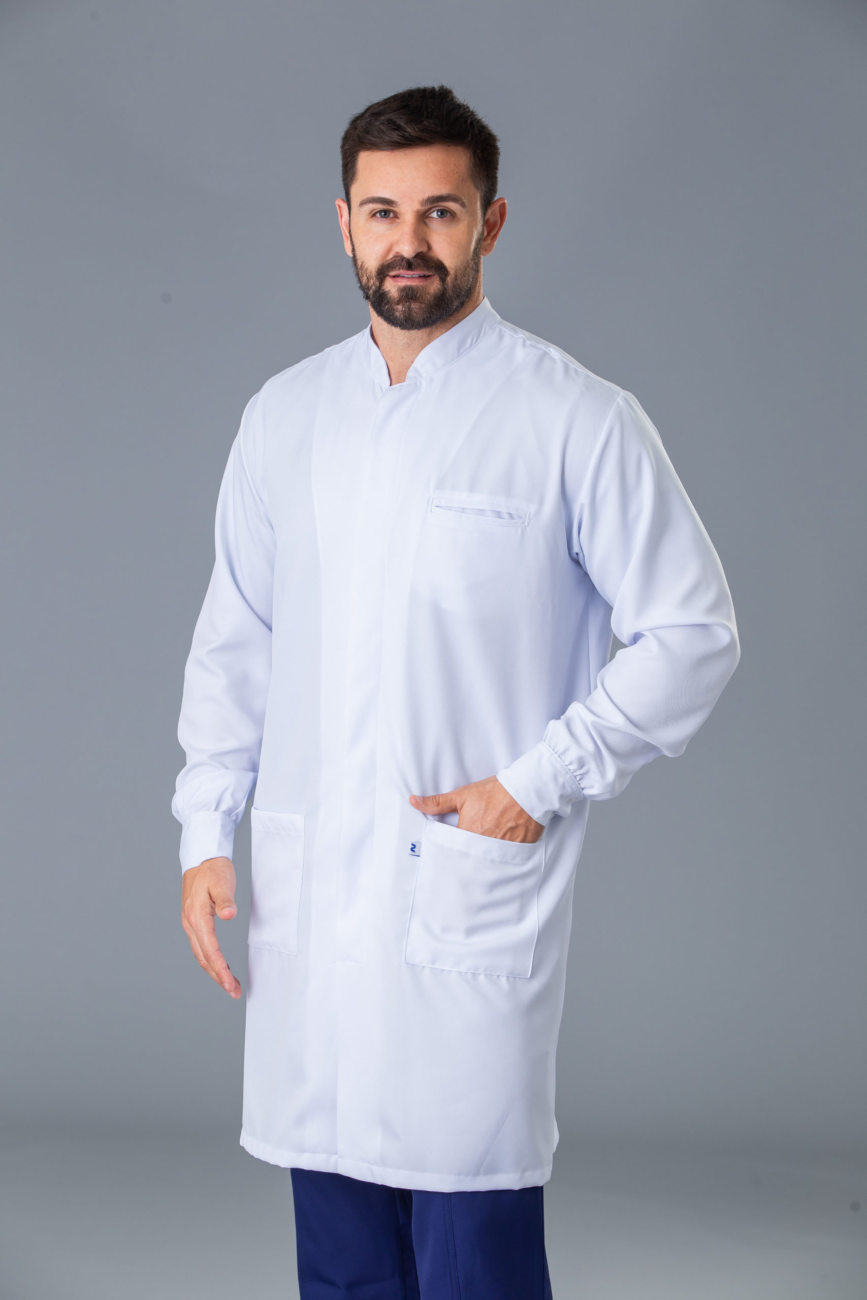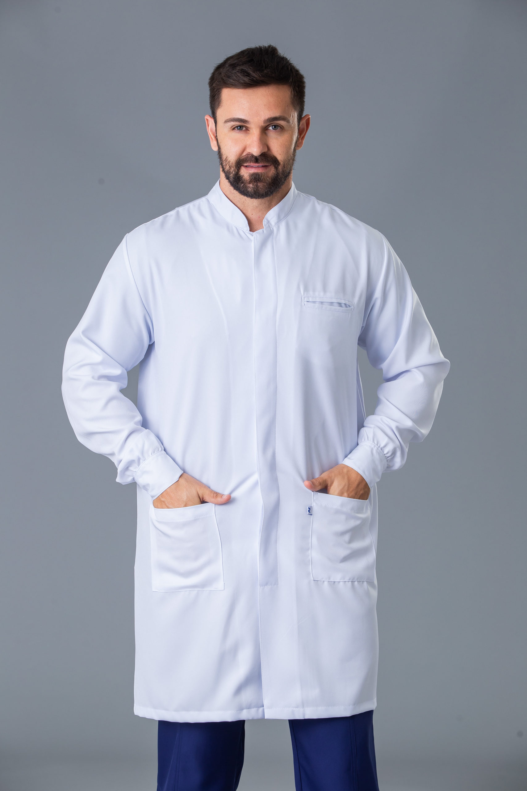 jaleco gola padre com fecho de botões nos punhos, desenvolvido para os homens que não deixam de lado o conforto e a elegância.