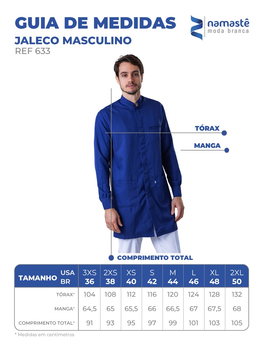 Jaleco disponível nos tamanhos: 36 ao 50 (consulte a tabela de medidas na última foto do anúncio para saber seu tamanho correto).