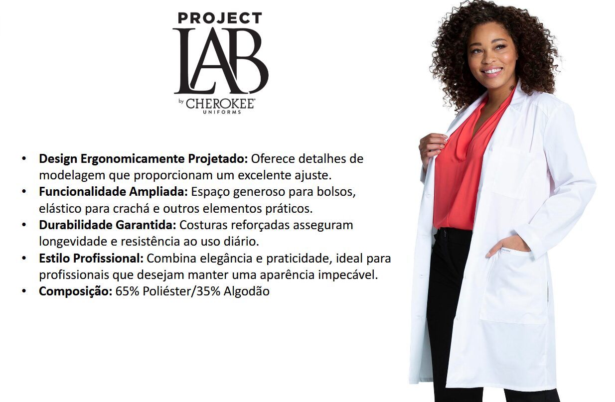 Jaleco Project Lab Cherokee, um produto de altíssima qualidade reconhecido mundialmente, é a escolha ideal para profissionais da saúde de sucesso que buscam um jaleco branco de alto padrão, com conforto e desempenho excepcional.