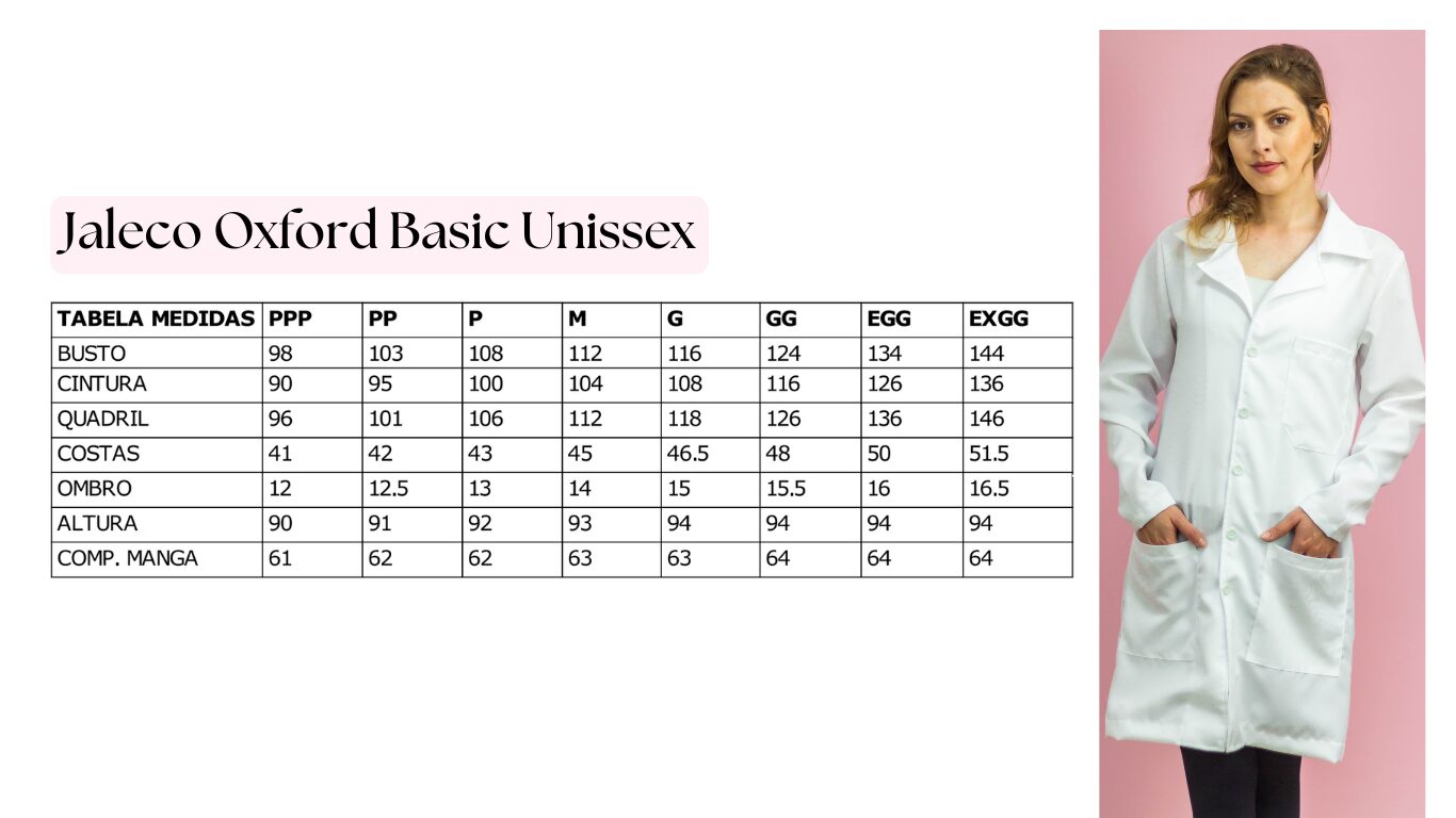 | Nome | Jaleco Unissex Branco Manga Longa Oxford |