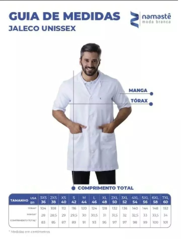 Jaleco disponível nos tamanhos: 36 ao 60 (consulte a tabela de medidas na última foto do anúncio para saber seu tamanho correto).